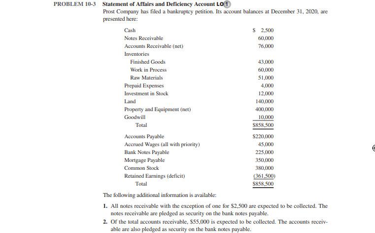 | Read Problem 10 3 Statement Of Affairs And Deficiency Chegg |